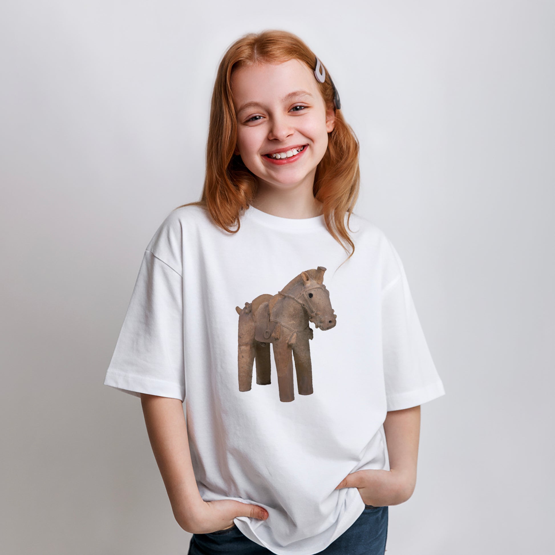 Haniwa are terracotta clay figures that were created during Japan's Kofun period. During this period, the spread of horseback riding customs introduced from the continent led to an increase in the production of horse-shaped Haniwa. Detailed depictions of riding equipment such as saddles, stirrups, bits, reins, and decorative elements provide clues to the types of horse gear often buried as grave goods in burial mounds.